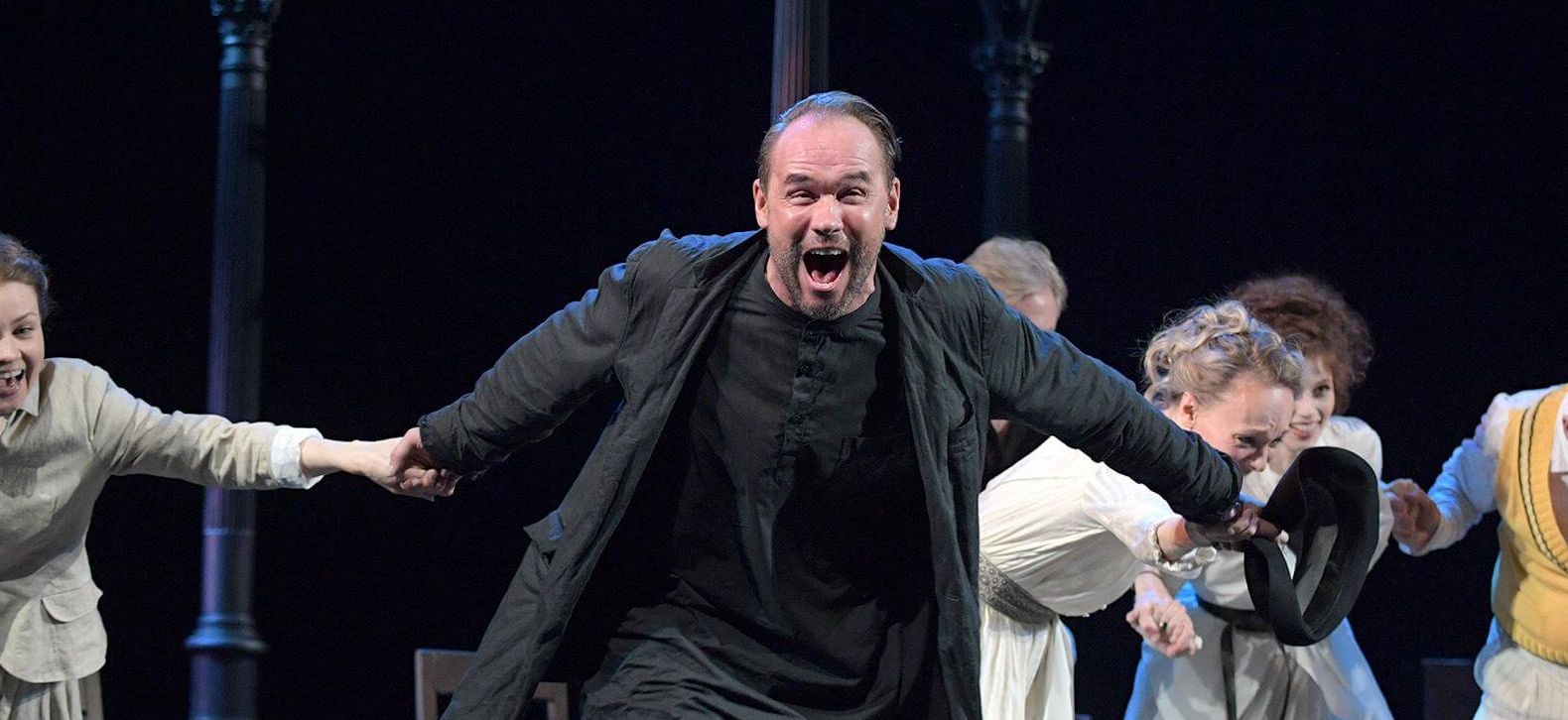 В начале пьесы есть фраза, точнее, вопрос: «Он герой или не герой?» В этом смысле весь спектакль, по сути, ответ на этот вопрос. Мне кажется, что Платонов — тот человек, который, в принципе, мог бы и должен был быть героем, противостоять разрушению, пошлости и деградации. Условно говоря, противостоять такому персонажу, как Венгерович-старший, который олицетворяет капитал, сросшийся с властью. И в юности Платонов думал, что он — Гамлет, который способен сразиться с целым морем бед…